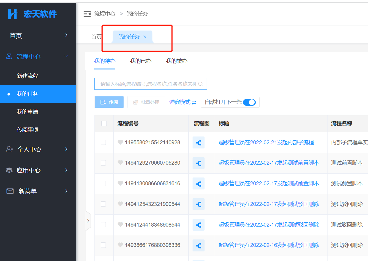 3.该方法会在系统内打开tab页签并进入对应页面,注意:该页面必须是vue-router中已经注册的页面,否则会进入404错误页。