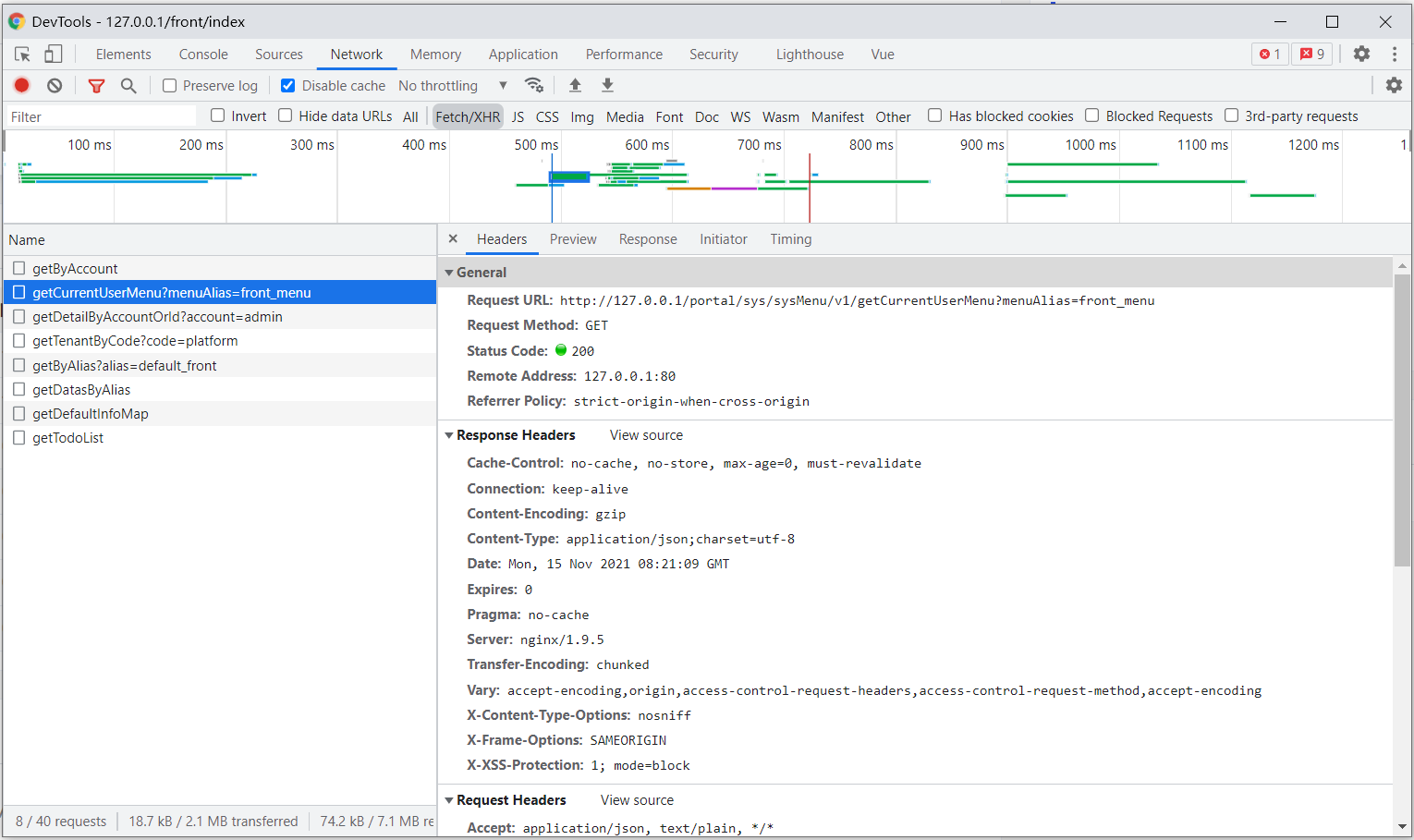 完成以上配置以后,访问系统前后端时使用的是相同的域名和端口,自然也就不存在跨域问题了。