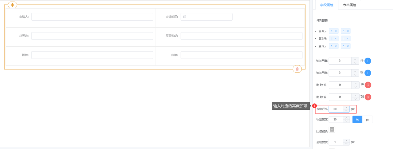 ③ 表格属性说明:行列配置