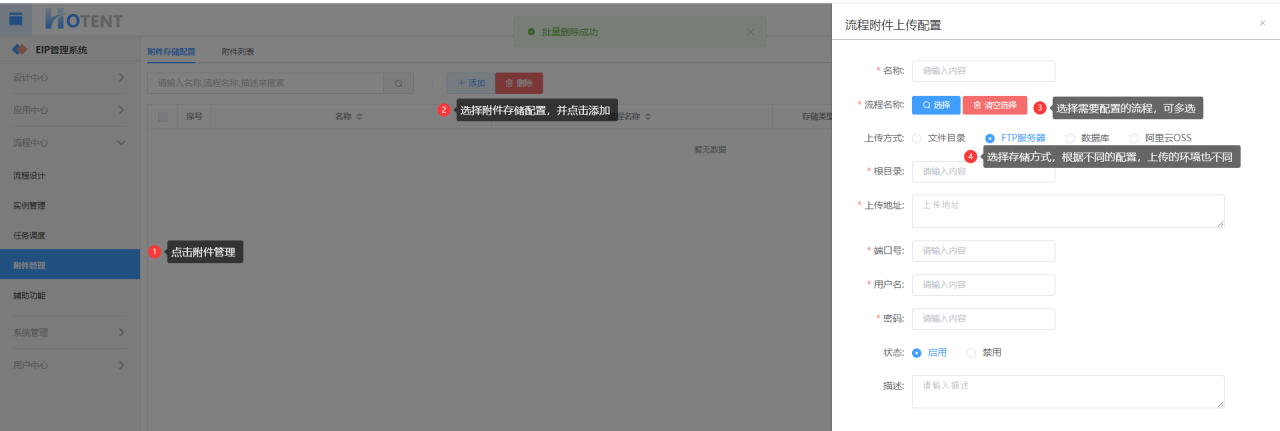 通过对不同的流程上传附件地址配置管理,来区分管理附件