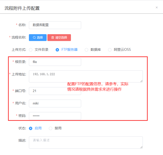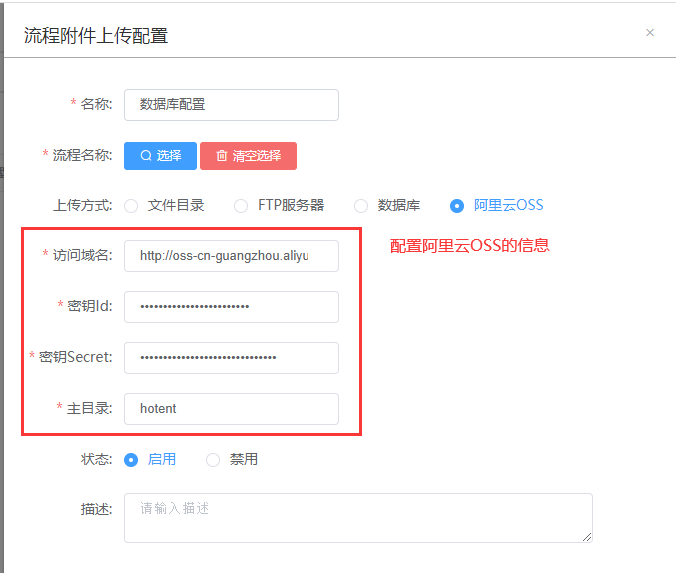 上传的附件配置分类四种:文件目录;数据库;FTP服务器;阿里云OSS