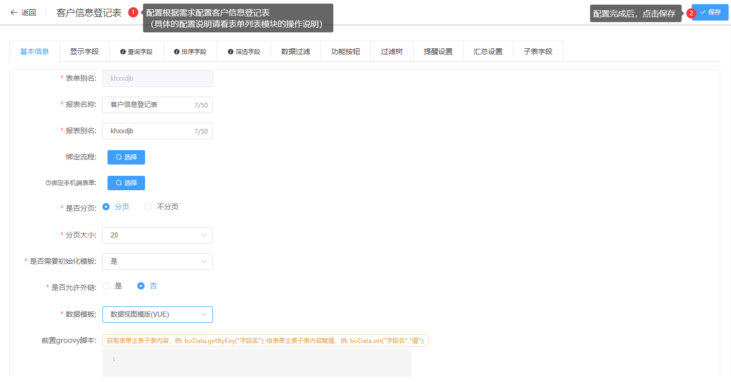 前提条件:已存在客户信息表;(客户信息表可通过建模添加)