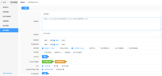 【其他设置】是对流程的其他属性进行设置的,例如流程标题、流程描述、通知类型、跳过类型等,下面分别进行说明。