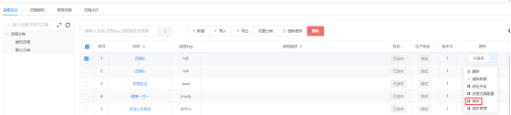 此功能可以实现的已有流程的快速复制,包括已有流程中的表单,权限,审批人员,节点属性等配置,达到流程的多次复用