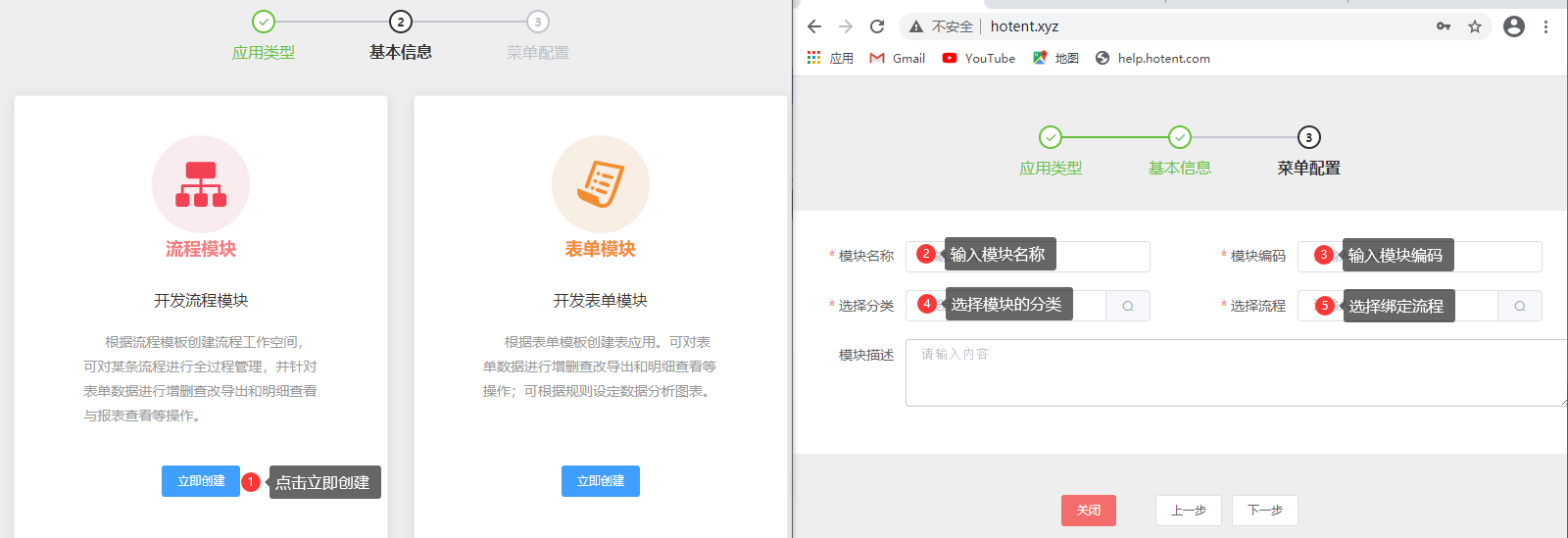 第三步:选择表单模块,点击{立即创建};