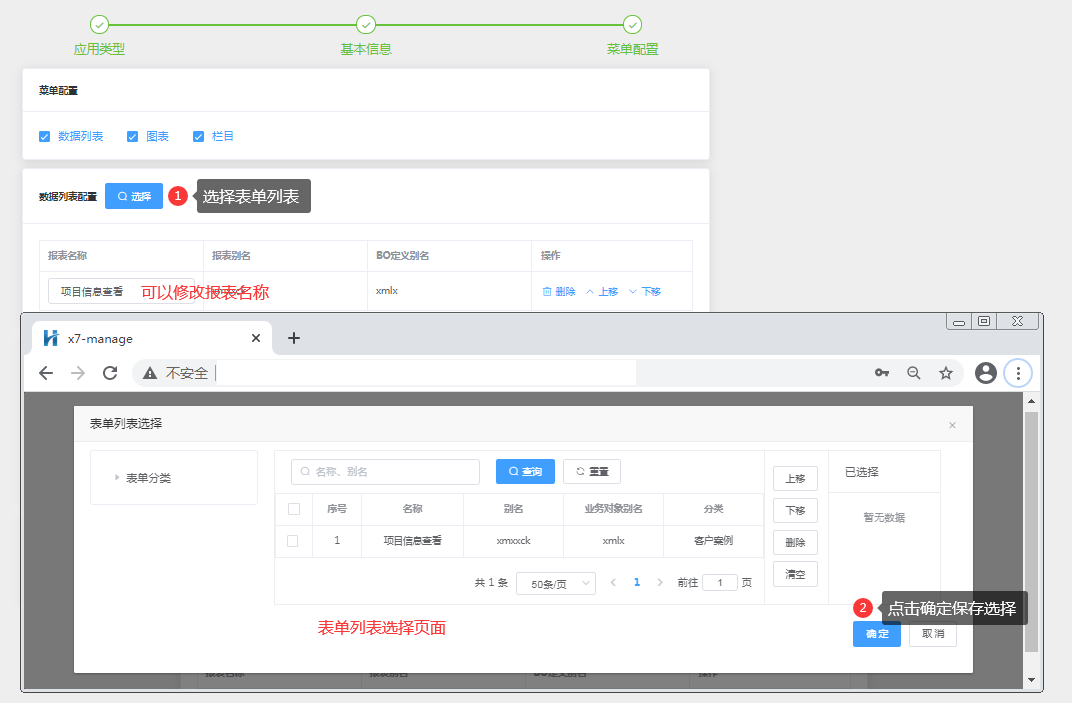 配置流程模块显示的表单列表;如下图: