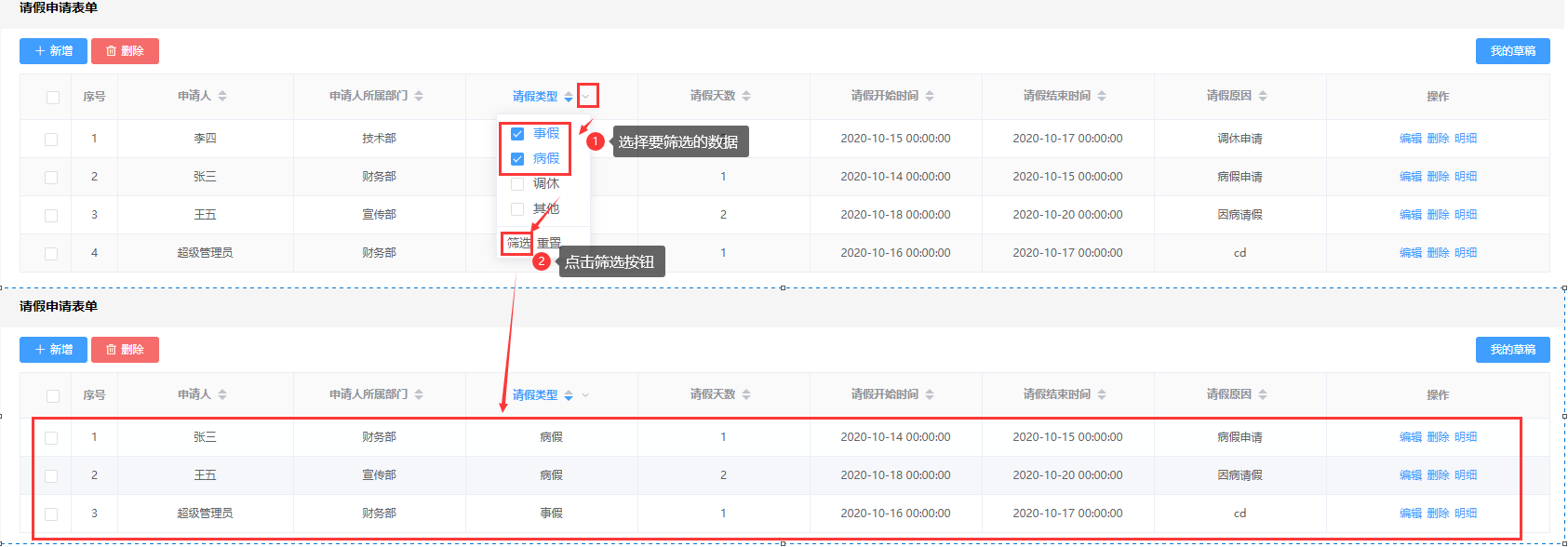 数据过滤:即可针对不同的情况展示不同的数据(如:当前用户只能查看自己添加的数据)