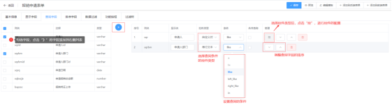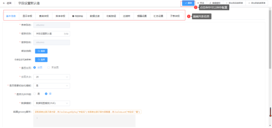 排序字段:设置列表中字段的排序字段及默认排序方式;