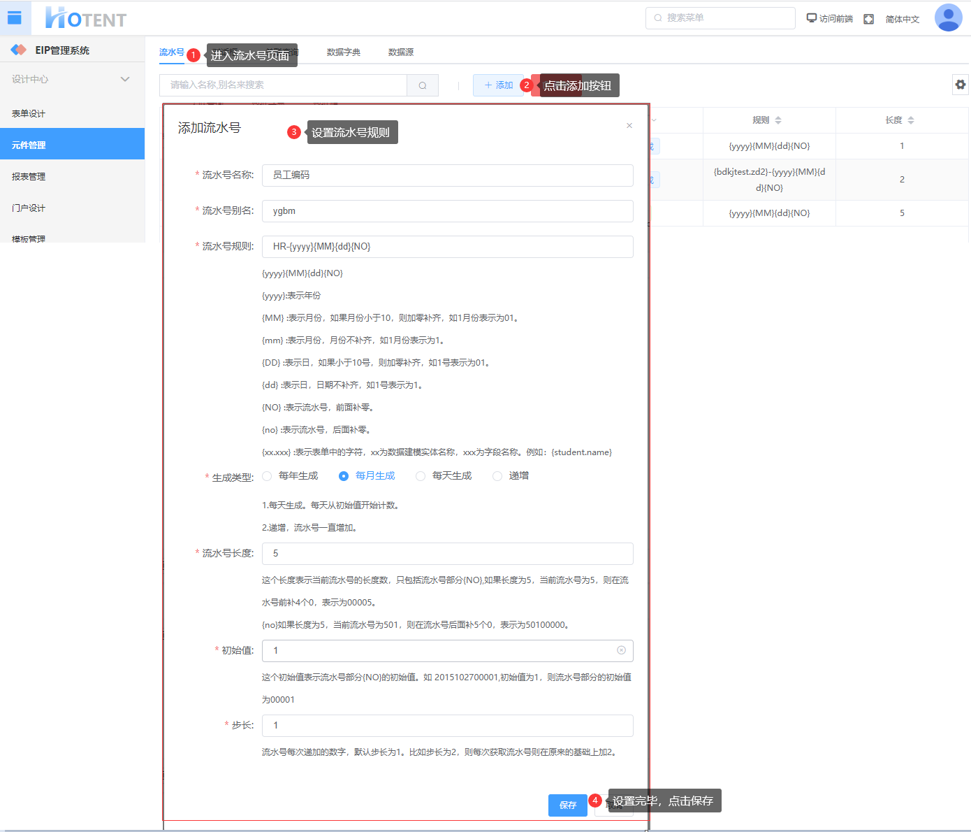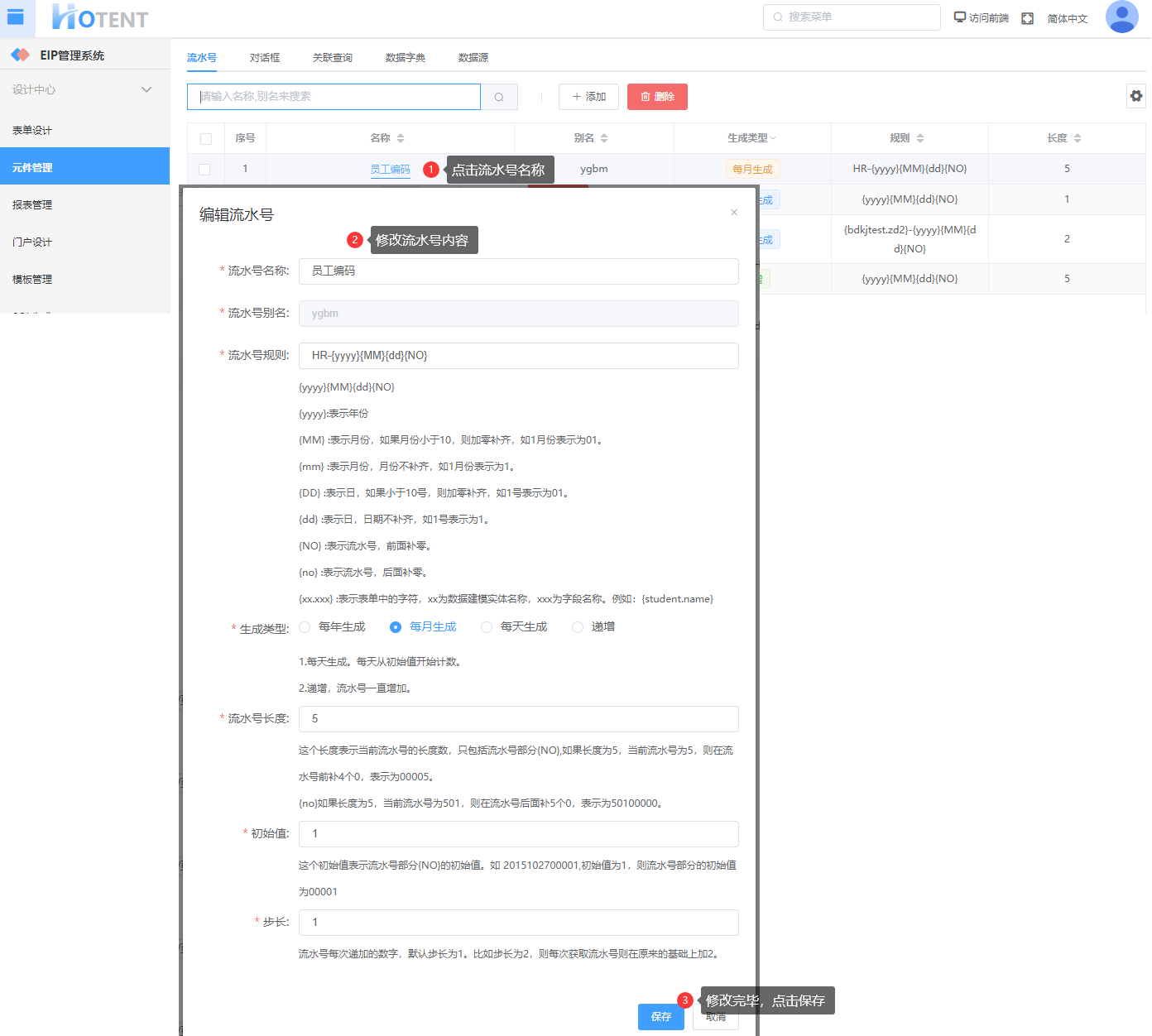 2. 流水号绑定表单的步骤在【业务表单】中的控件说明有详细介绍;