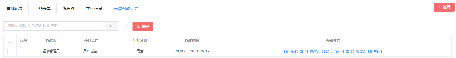 5. 表单修改记录:显示表单在哪个节点修改了信息