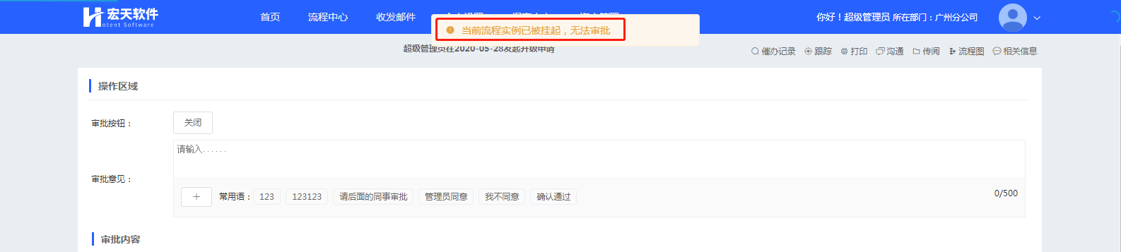1. 审批记录:显示流程的审批记录,管理员可对流程的审批意见进行删除或修改;