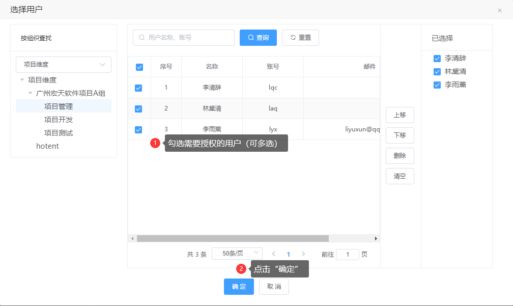授权用户,系统中可以查看编辑的模块、功能。新添加的菜单需要授权才会显示。