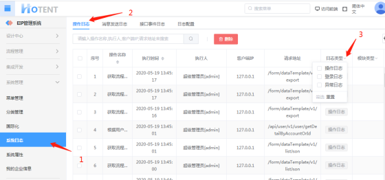 第一步:【系统管理】→【系统日志】→【操作日志】