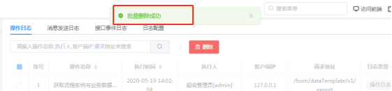 当日志积累到一定量或一定周期后,管理员可通过操作界面删除部分/全部操作日志。