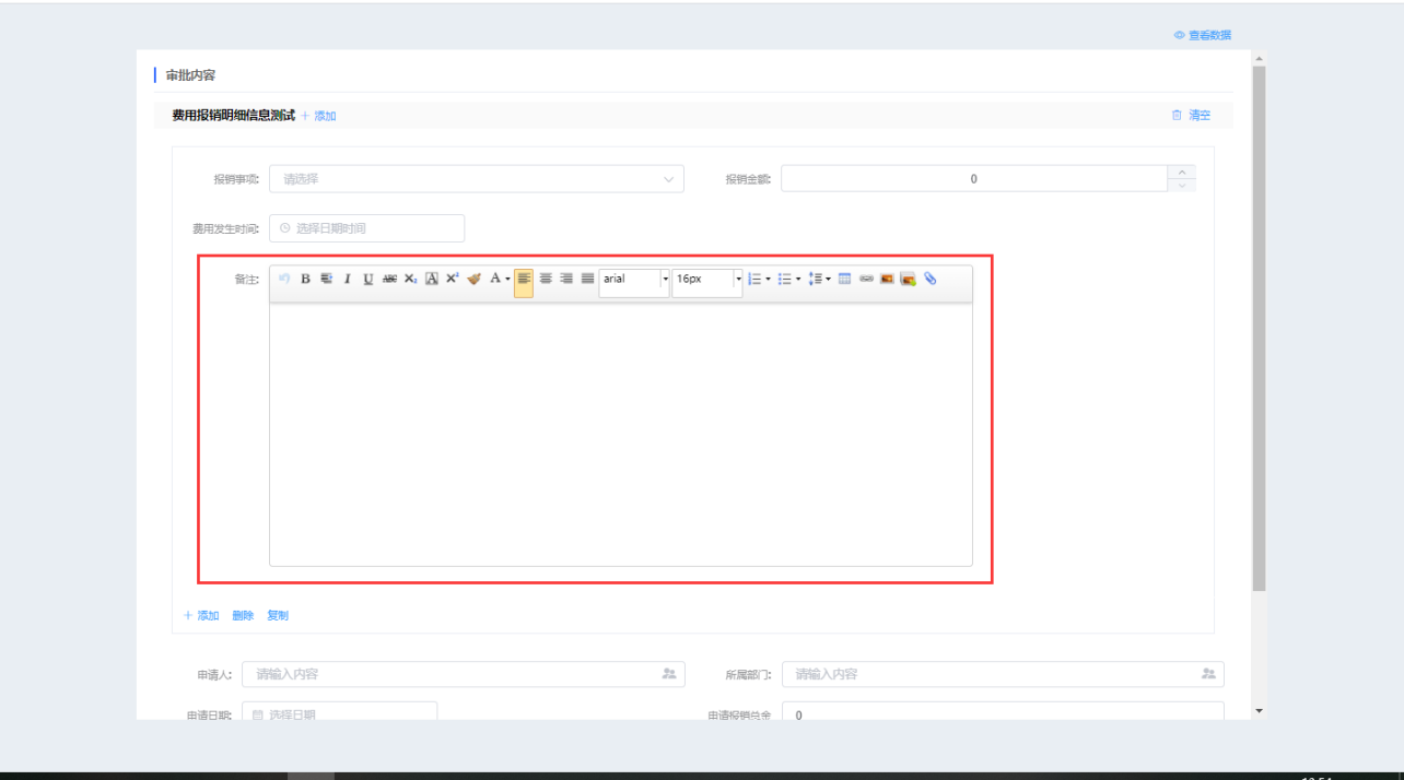 多行文本框,可设置为富文本,用于较多的内容输入;