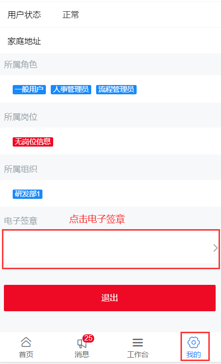 查看个人信息,设置用户签章
