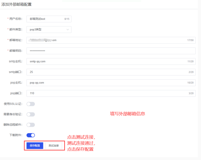 ① 添加外部邮件配置