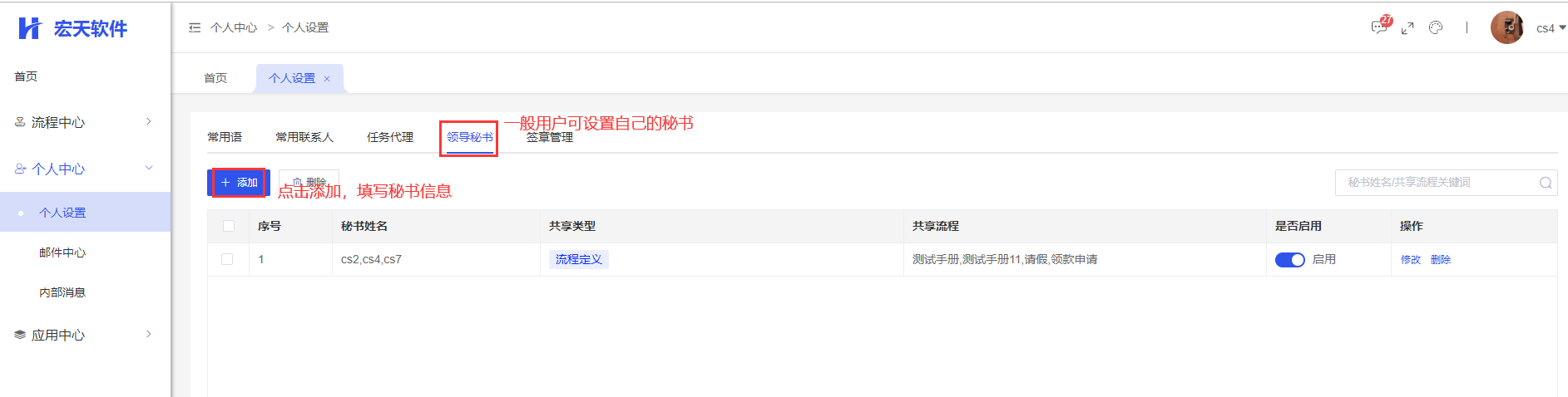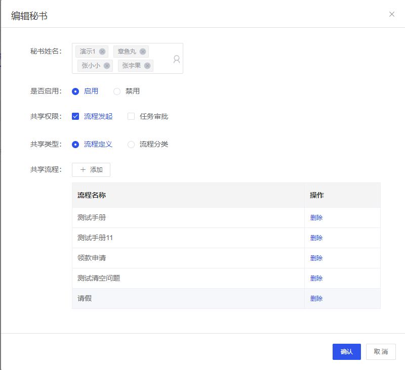 •领导秘书:配置领导秘书,秘书可代理领导启动或审批流程。