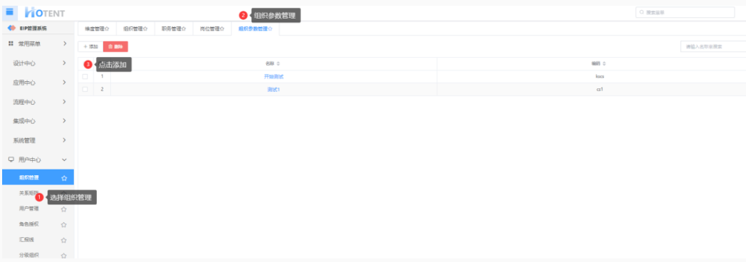操作:【用户中心】→【组织管理】→【组织参数管理】→单击“添加”