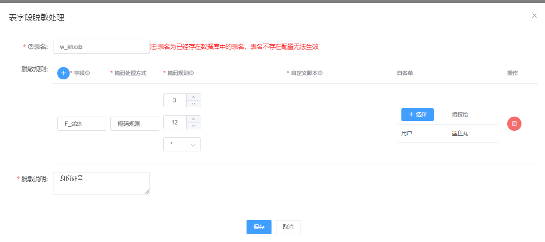 注:白名单中的用户可查看该字段的全部内容,不受掩码规则限制