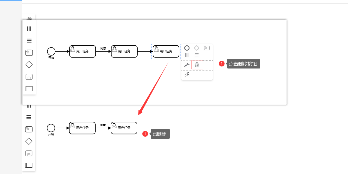 注:改变元素类型时,只能变为相似的元素类型,例如,开始节点只能变为结束节点,用户任务只能变为其他任务,不能变为开始和结束节点,网关只能变为其他类型的网关。