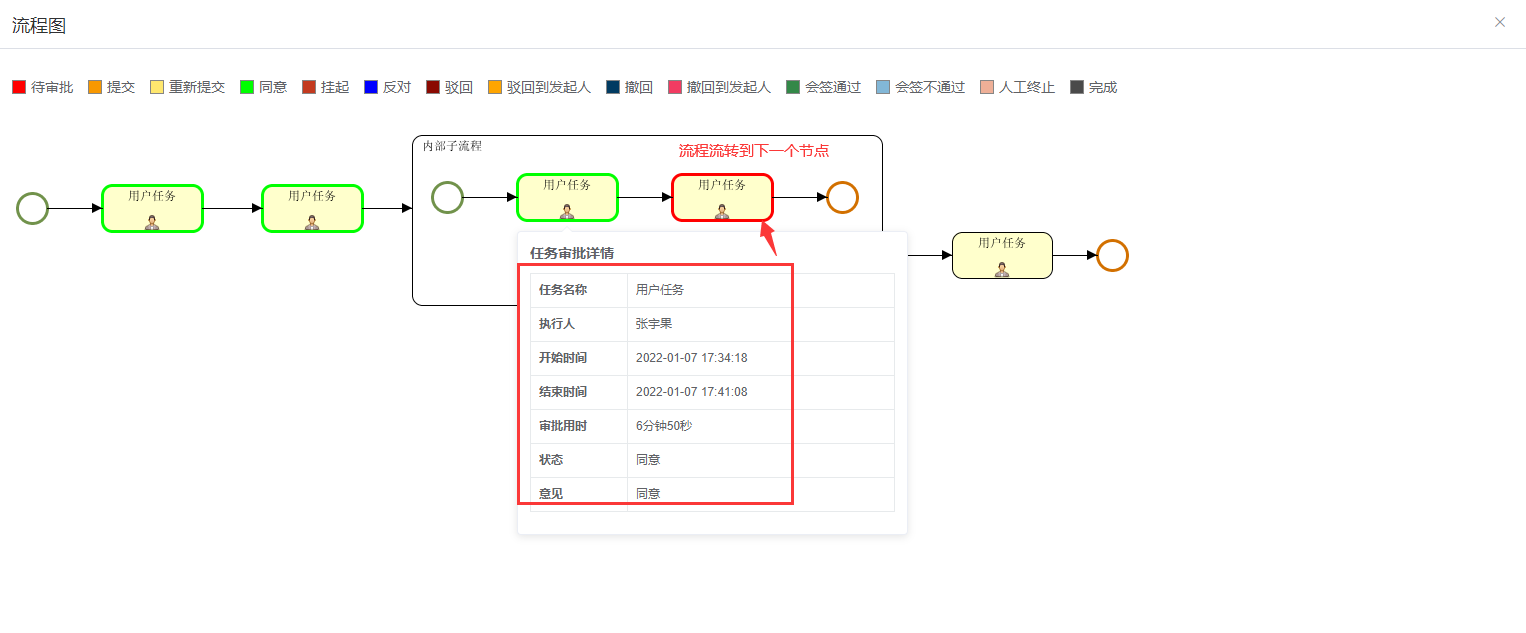 当张宇果用户审批完该任务: