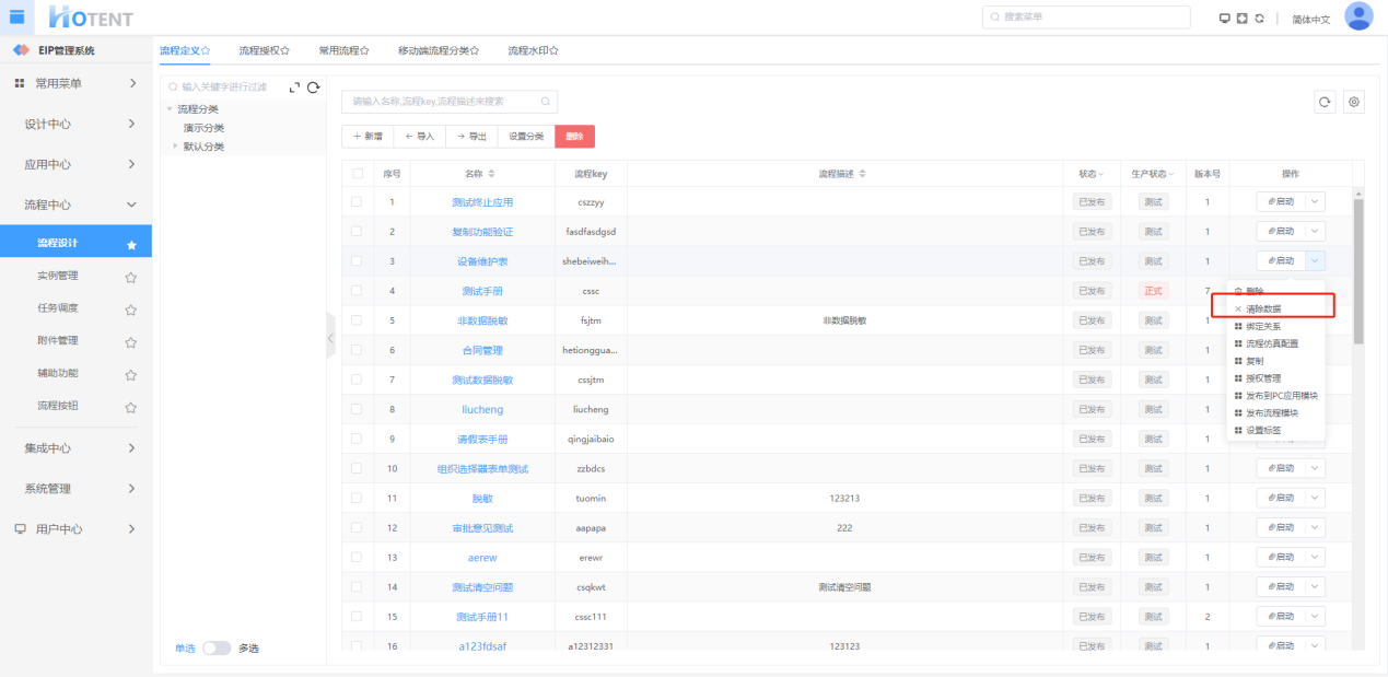 “测试”时才可以进行清除,正式状态不能进行清除操作