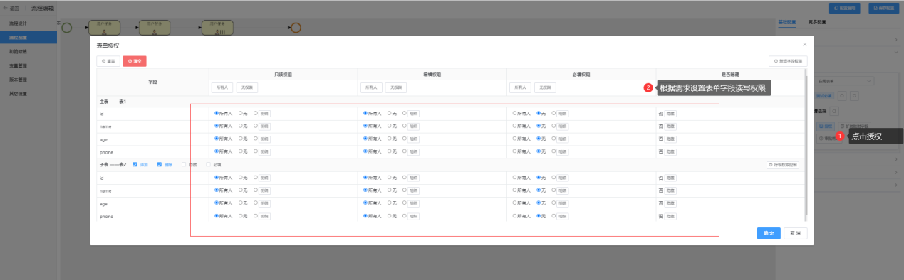 场景:文件审查流程:填写意见节点,审批人只能够编辑自己新增的数据,可查看到所有的数据;