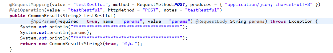 使用@ApiParam注解获取流程参数params,此参数为固定参数,返回的为json数据