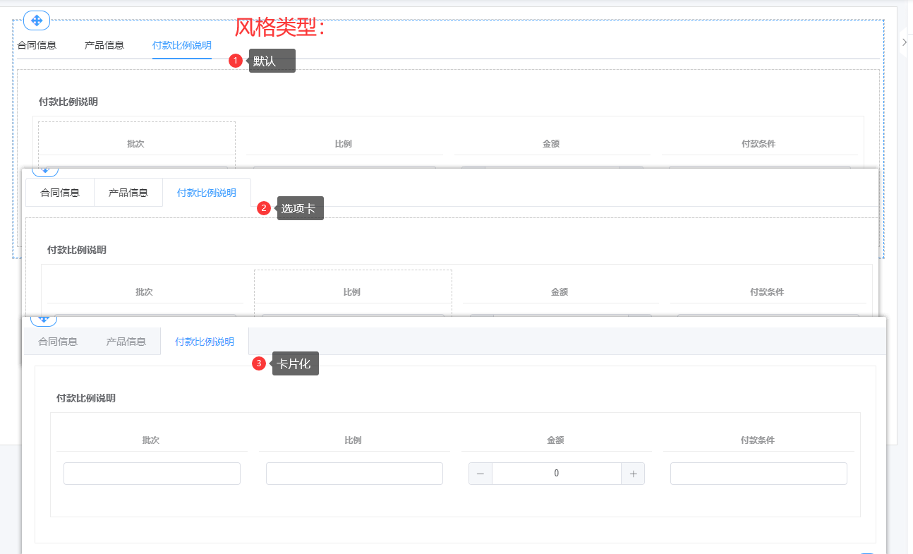 主要使用在表单有非常多的字段信息,分为成几个信息模块。因为如果全部放在一起会很长且可读性不好,这时候如果用tab布局来排版则可以将内容都放进来切可读性很好。