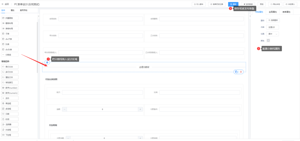 同一表单可放置多个分割线
