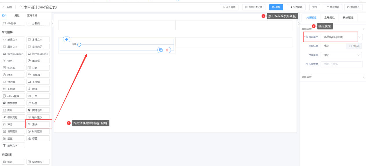 第二步:绑定属性、可根据需求设置控件的其他属性;
