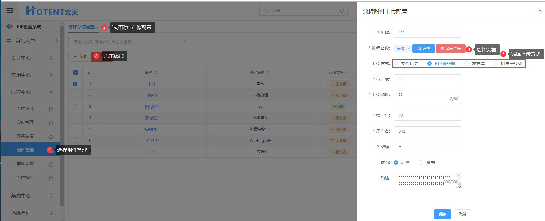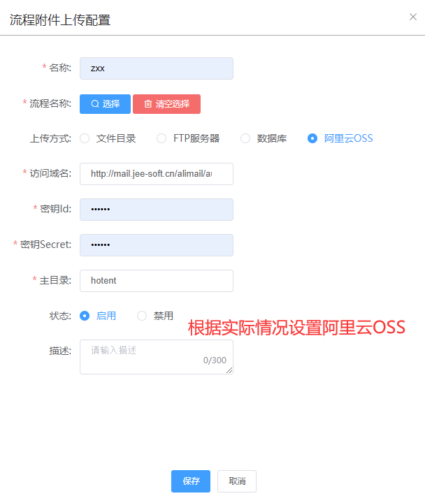 上传的附件配置分类四种:文件目录;数据库;FTP服务器;阿里云OSS