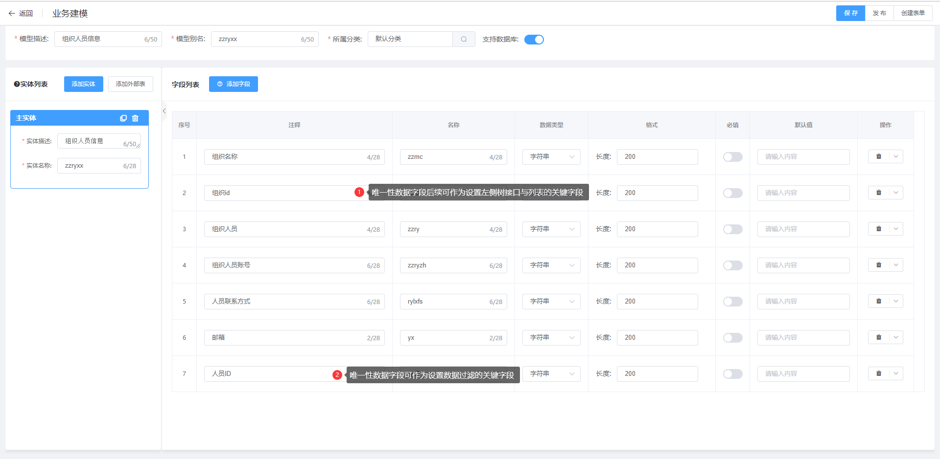基于业务建模发布后在表单设计页面拖拽控件并进行相关配置,配置完毕后保存并发布表单。