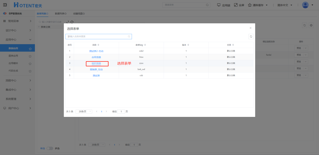 【数据应用】-【表单列表】-【添加】-选择表单进入数据列表配置页面
