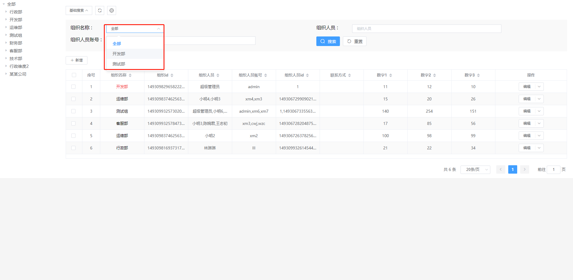 实例:只显示组织名称为行政部的数据
