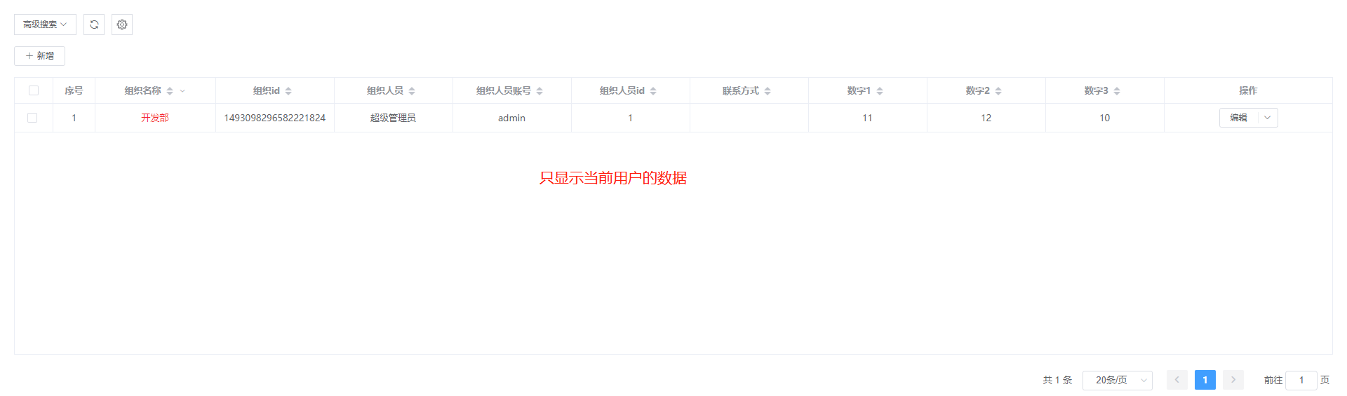 实例:当前登陆用户看到组织人员是自己的数据