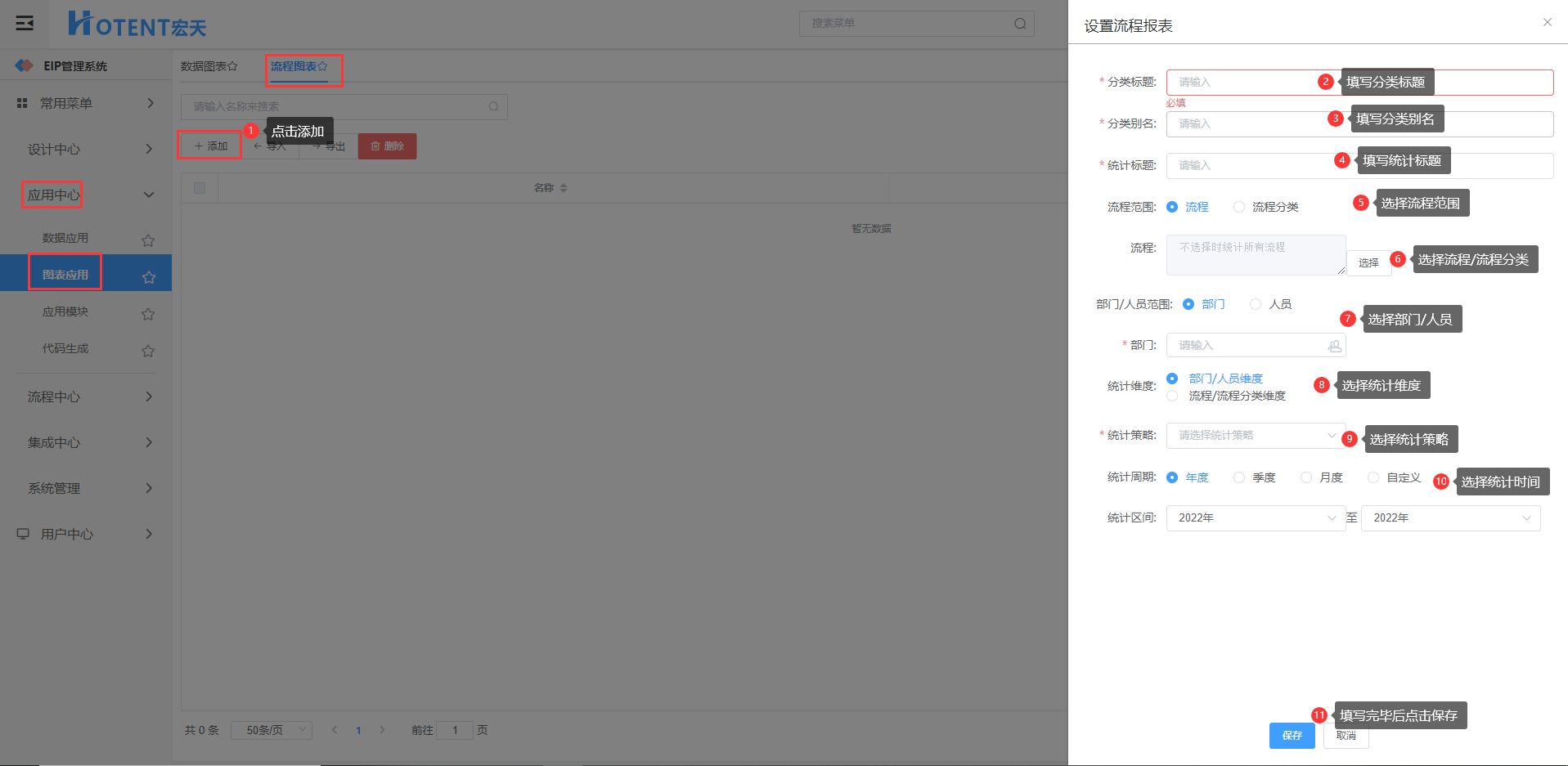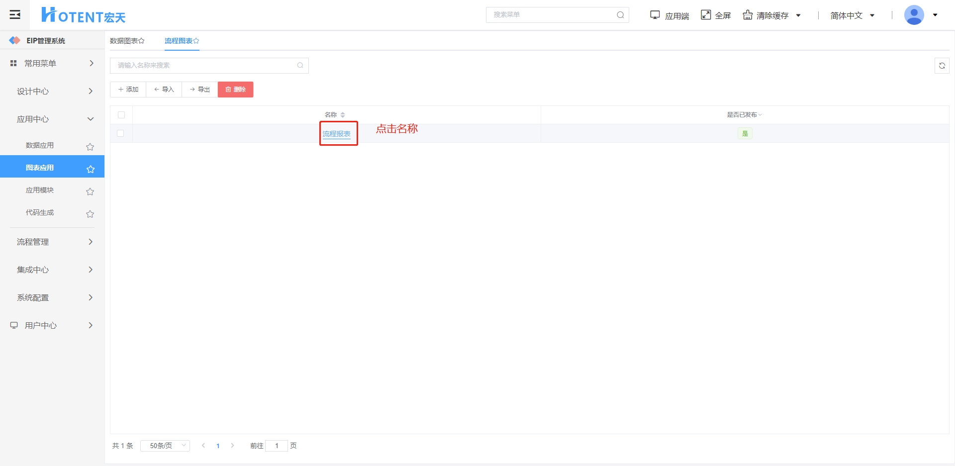 第一步:进入【图表应用】→【流程图表】点击添加按钮