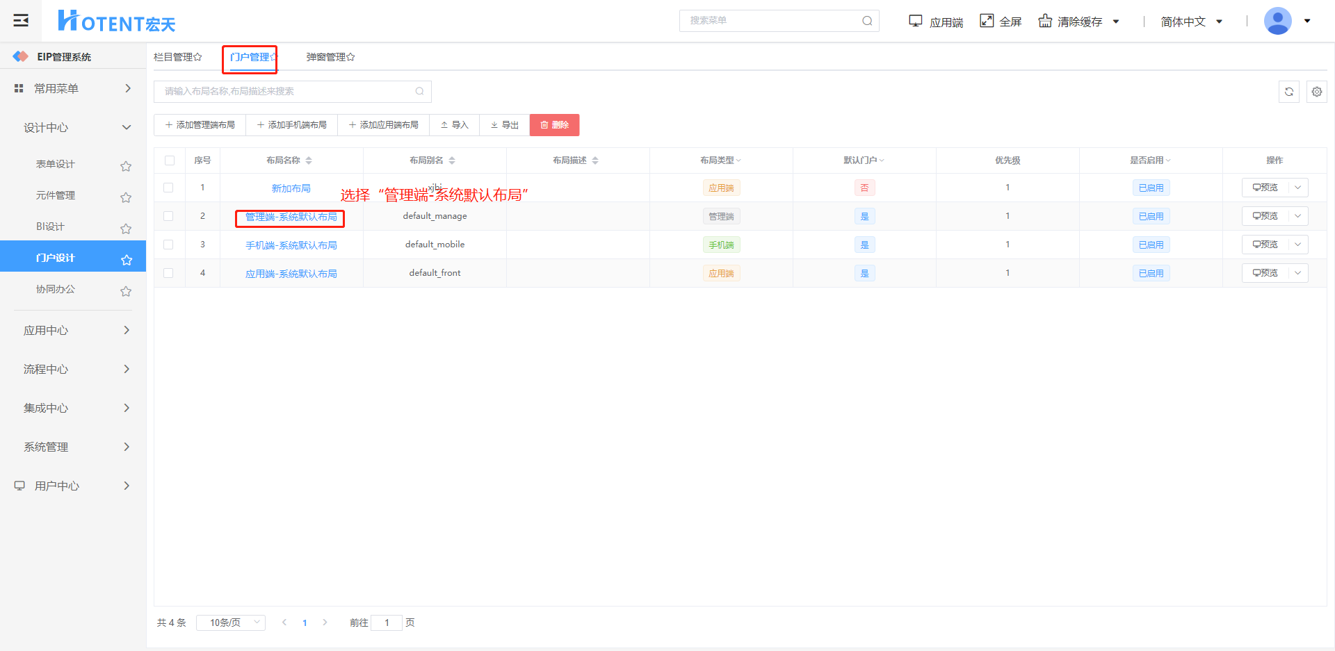 第一步:进入【门户设计】→【栏目管理】页面;