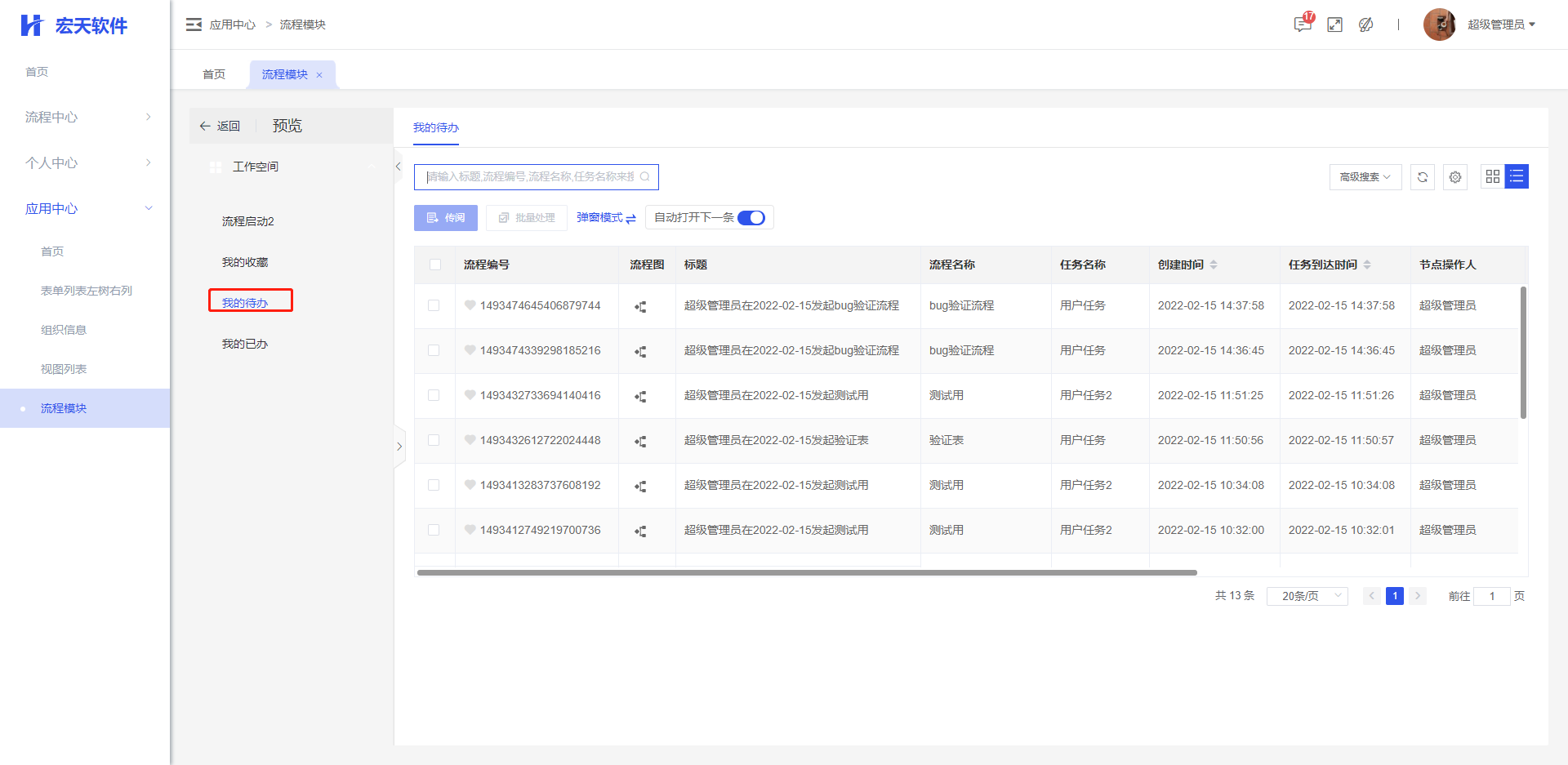 1、可在该模块中查看某个流程的待办、已办等情况,也可直接启动该流程;