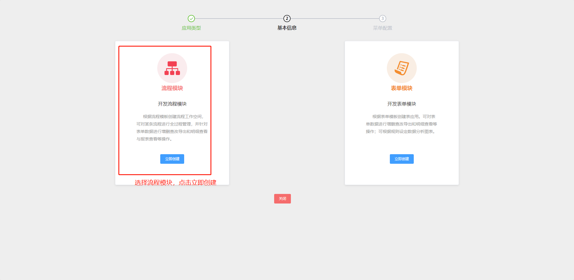第三步:选择流程模块,点击{立即创建};