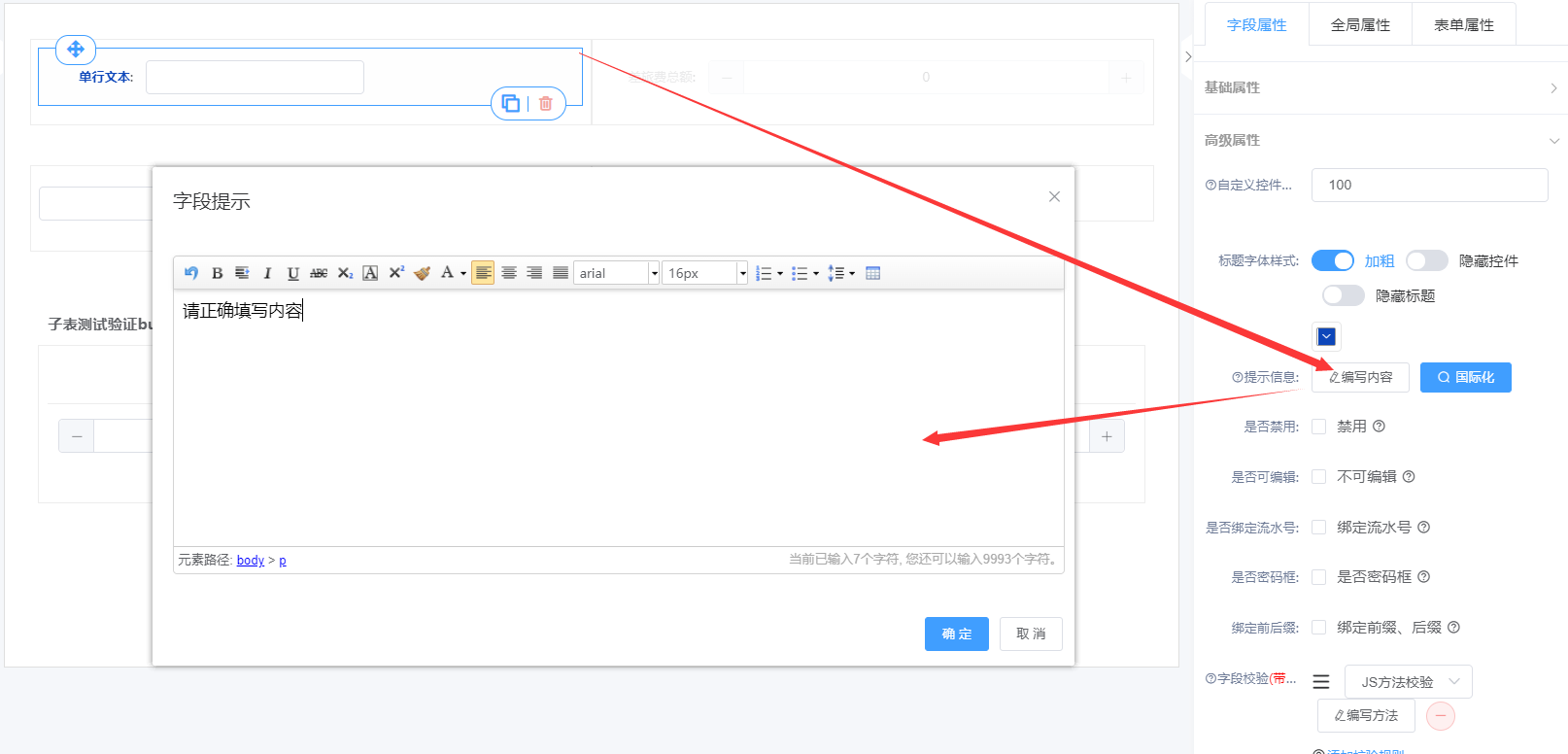 字段标题:该控件在表单显示的标题;默认获取控件绑定属性的名称,可修改;