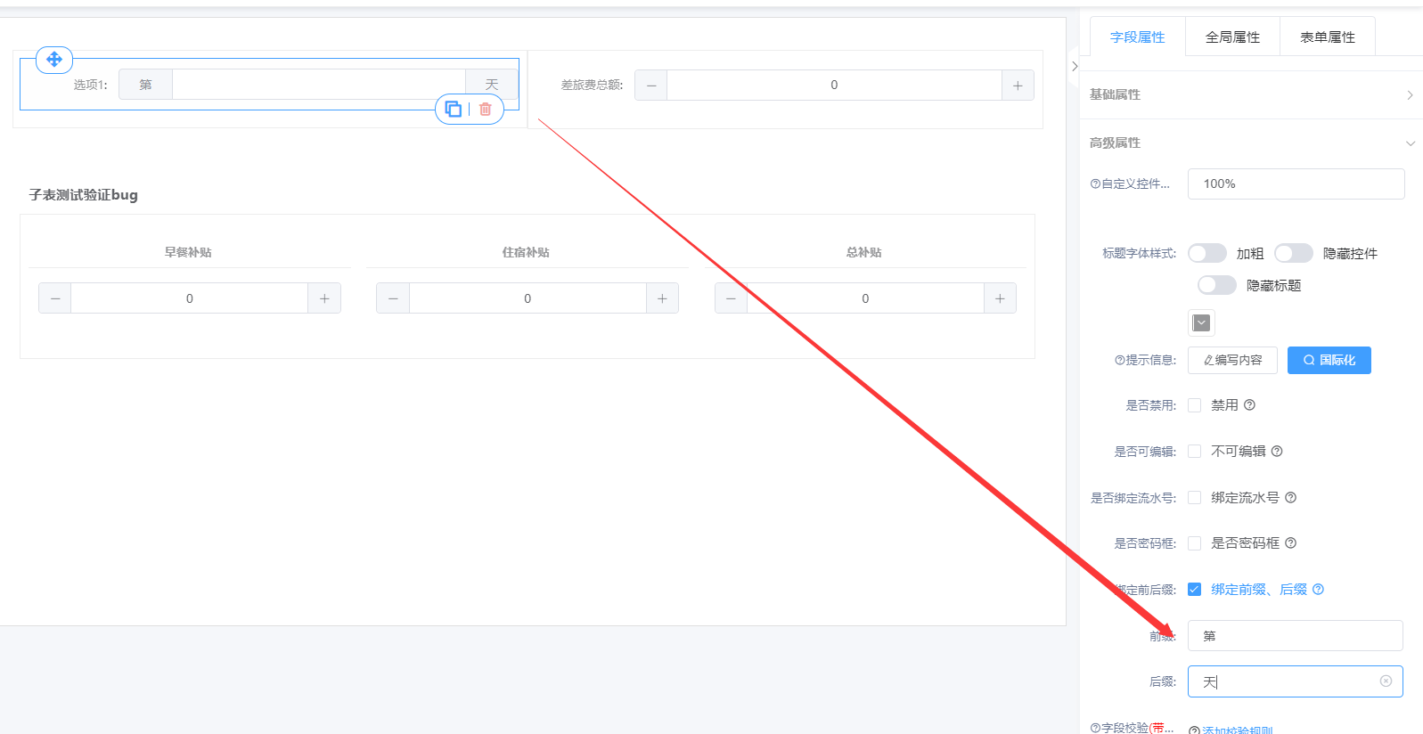 · 绑定前后缀:给当前控件添加前后缀(注:前后缀的内容不会存储到数据库中)