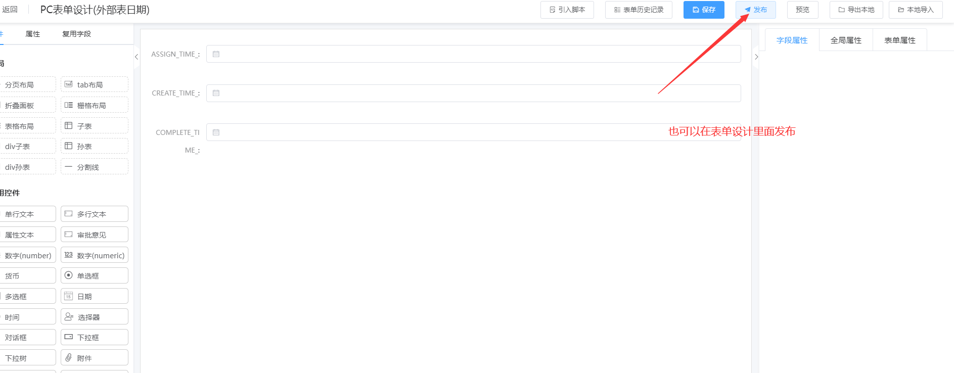 注:状态为已发布的表单,只能在编辑表单页面点击“发布新版本”按钮,进行发布新的版本;版本发布后,版本会在原来的基础上加1;