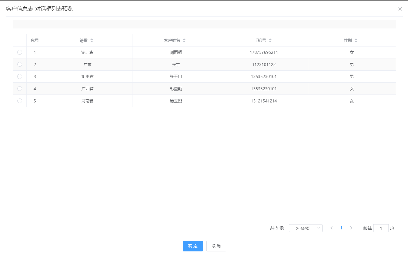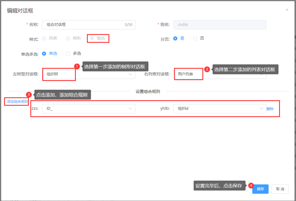 2、 对话框展示的样式可以分为列表、树形两种(图中举例的为列表样式);