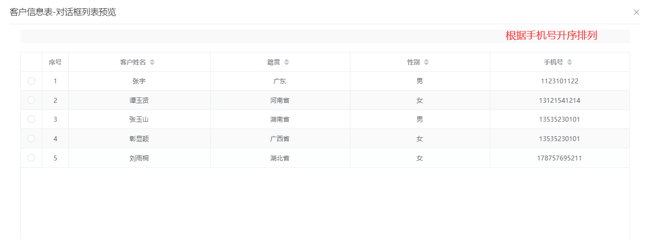 5、 排序字段:设置对话框列表中的排序,可选择是升序还是降序;