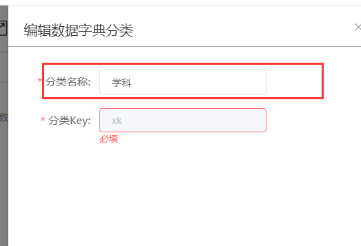 第二步:在右侧点击对应字典项的“编辑”,修改分类名称、分类key内容;