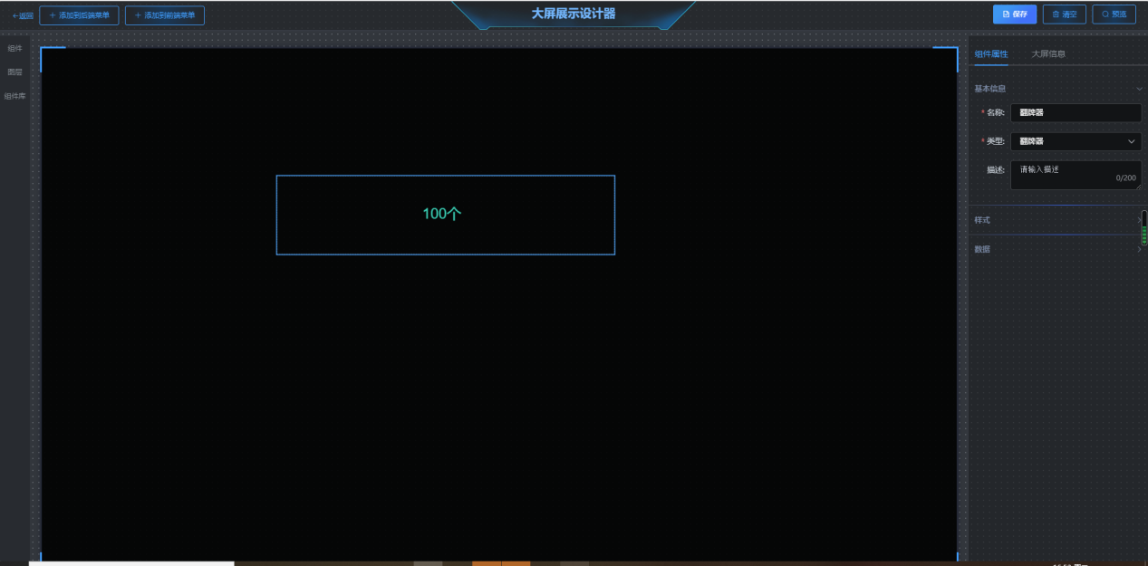 支持自定义翻牌器的内容模板、动态曲线、动态帧数和位置等样式,通常与其他组件配合使用,通过交互功能在可视化应用中展示实时数据的变化情况。如图所示: