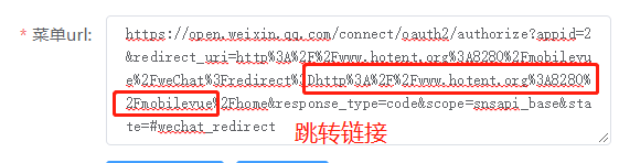 菜单url:点击一键生成后,根据配置信息生成在企业微信中访问的url
