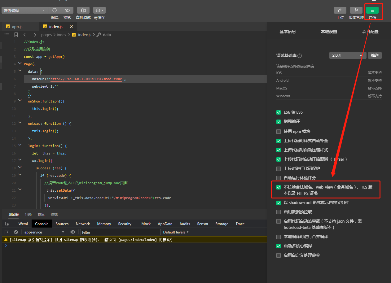 打开pages/index.js文件,将baseUrl的值改成Eip7移动端部署的地址。注意,地址结尾无需斜杆/。
